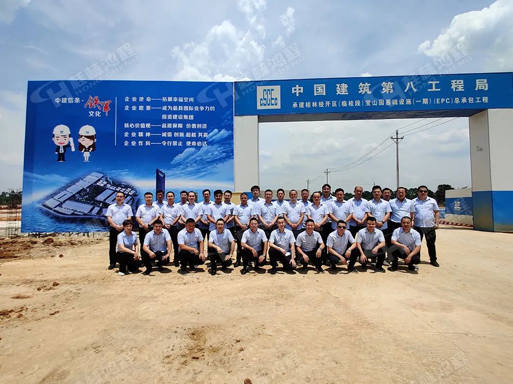 會后,銷售團(tuán)隊在桂林鴻程副董事長容北國的帶領(lǐng)下,參觀公司位于寶山工業(yè)園的新項目施工現(xiàn)場。三個月前的奠基儀式依舊清晰在目,而今整片園區(qū)土建工作正在如火如荼的開展,施工現(xiàn)場一派熱鬧。
